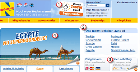 Want Neckermann probeert me hier te verleiden met 4 verschillende soorten persuasieve prikkels: